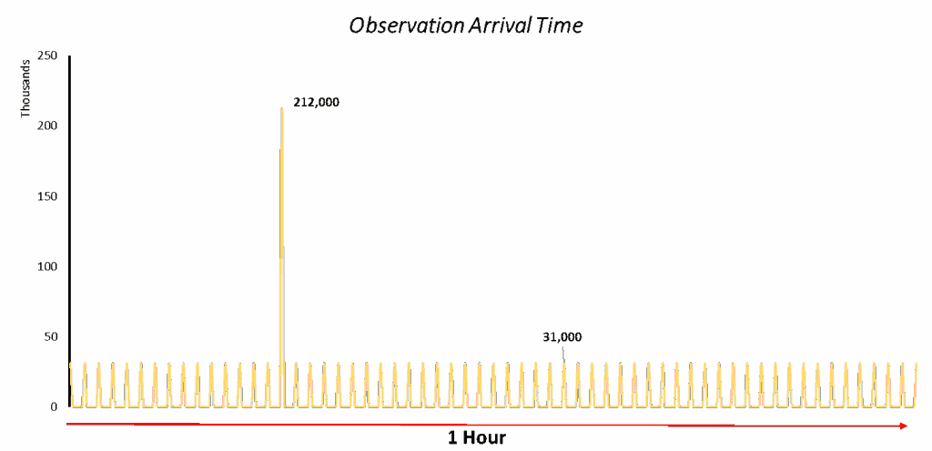 Given Met Office’s ethos of adopting a ‘Cloud First’ approach, and its partnership with AWS, it was an obvious choice to build the system in AWS’ Cloud. The first important decision was to select what would be our main compute resource. The observation data would be arriving once a minute and, given this spiky arrival time, Lambda proved to be the most cost-effective solution, allowing us to only pay for small periods where compute was required. The platform processes several observations from roughly 400 stations every minute – equating to 15 billion observations per month – so any marginal improvements on compute cost would soon add up.