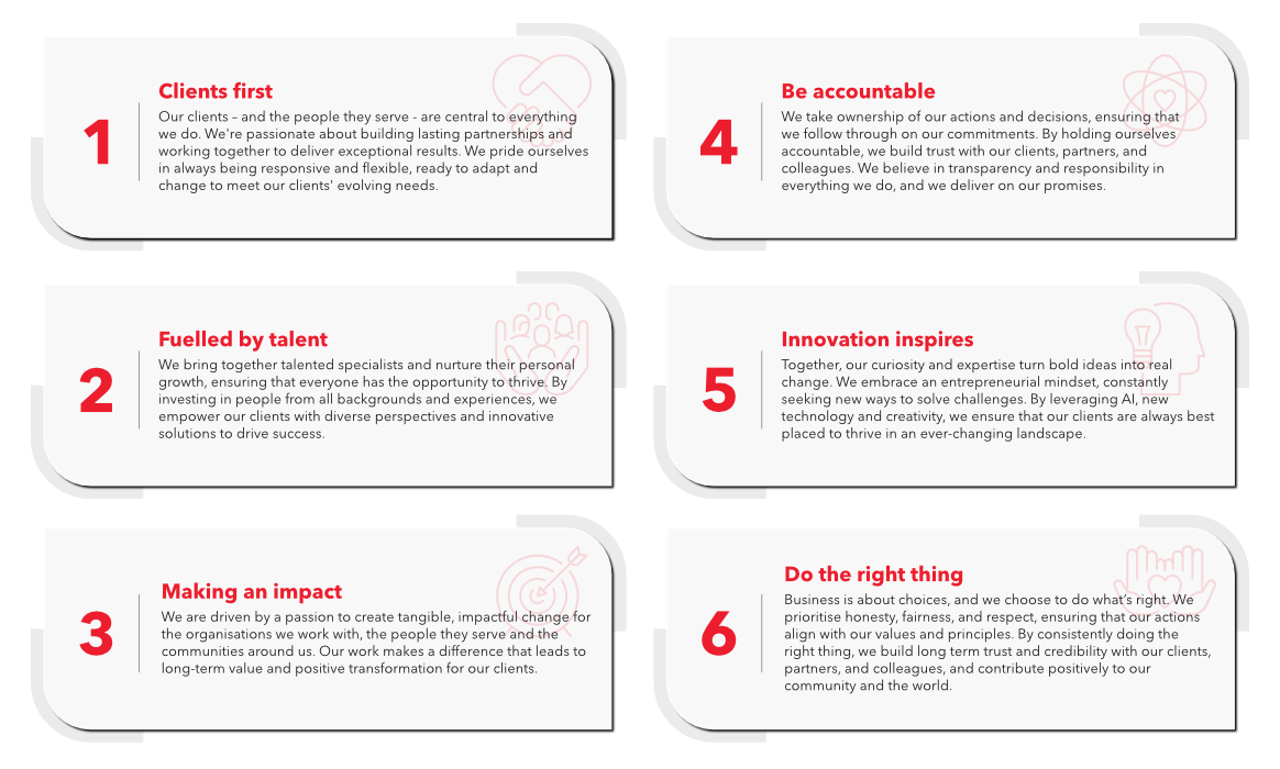 Our values don’t just guide us — they set us apart, driving bold ideas, authentic connections and lasting impact.