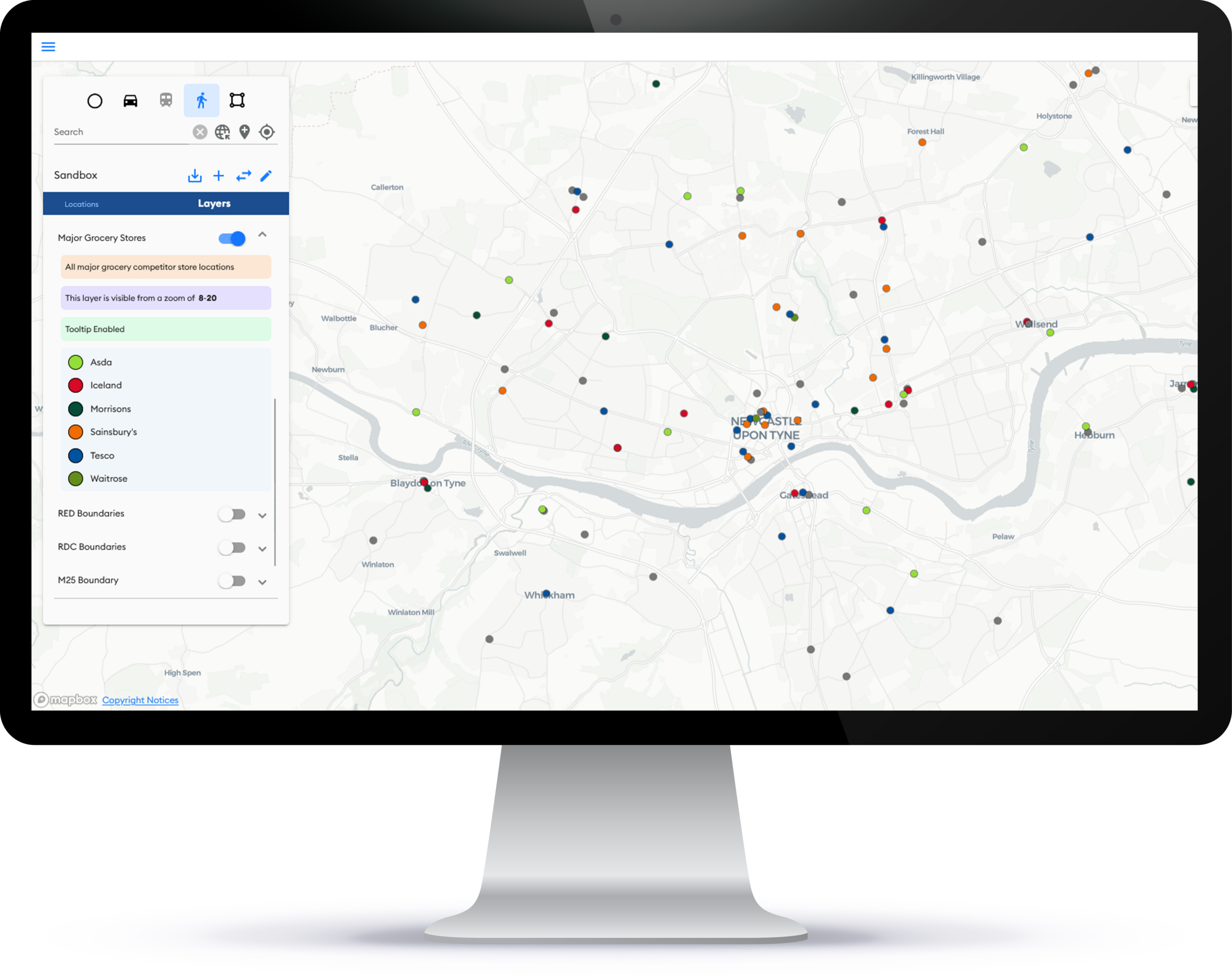 Grocery Footprint covers all major supermarket brands, including discounters. Catchments are defined and estimated market share is predicted for each store, depending on the amount of money available in the catchment.