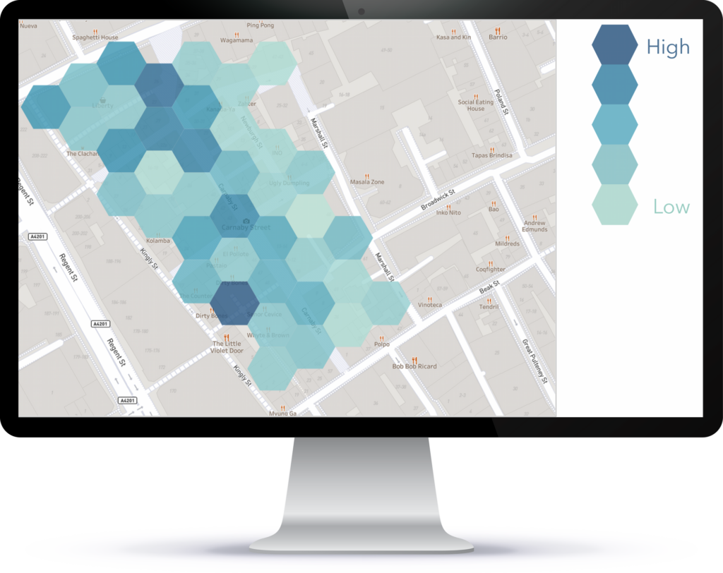 It categorises and scores destinations according to presence, using movement and transaction data to simulate peoples’ movements to understand where they come from to visit and spend at locations. The resulting catchment datasets (“Footprints”) deliver groundbreaking insights into how people interact with places.